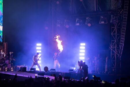 BONTIDA, ROMANIA - JULY 20, 2019: English rock band Bring me the Horizon performing a live concert on the Main Stage of Electric Castle Festival