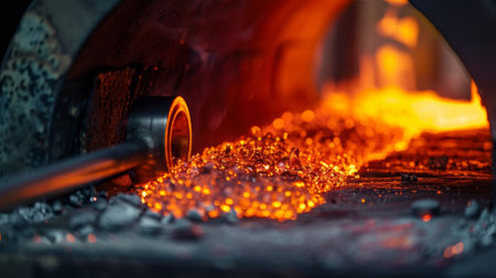 A glassblowers furnace with glowing redhot coals and a glassblowing pipe at the ready for crafting delicate glass objects