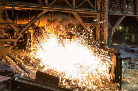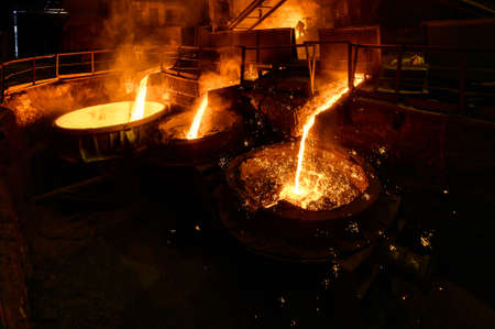 Blast furnace, cast iron production. Metal poured out of the metallurgical furnace