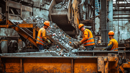 Workers engaged in the recycling process efficiently operate machinery to sort and process various materials ensuring effective waste management and sustainability.
