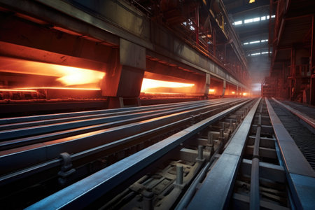 conveyor belt moving hot steel slabs in a factory