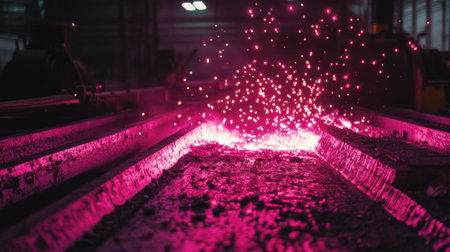 Sparks from melting steel in a metallurgical plant.