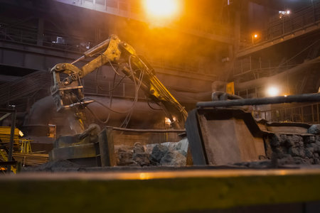 Domestic slag discharge at the iron foundry, industrial landscape