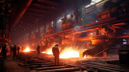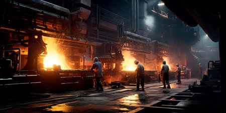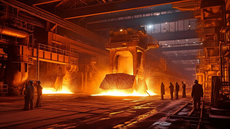 Industrial steel metallurgy metal heat iron factory foundry furnace people