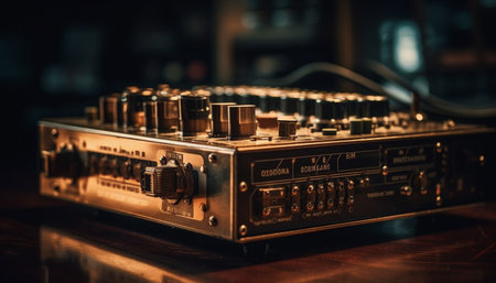 Old knob controls vintage turntable at nightclub generated by artificial intelligence