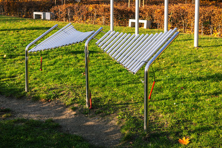 Street stationary xylophone in the city park. Musical instruments in the park.