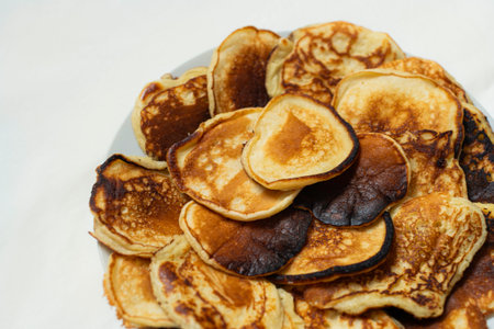 A tempting pile of freshly made, golden-brown sweet pancakes, perfect for breakfast or dessert. Highlights homemade goodness and delicious comfort food.