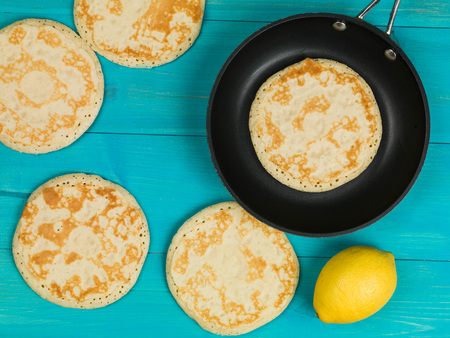 Shrove Tuesday Fresh Cooked Pancakes On A Blue Background