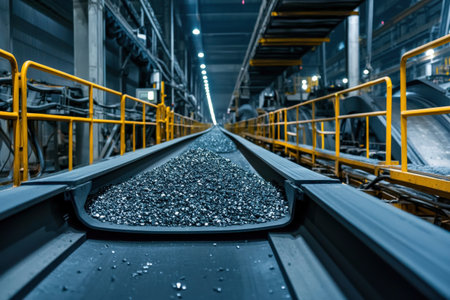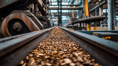 raw materials moving on a conveyor belt in a manufacturing plant, showcasing industrial production in action