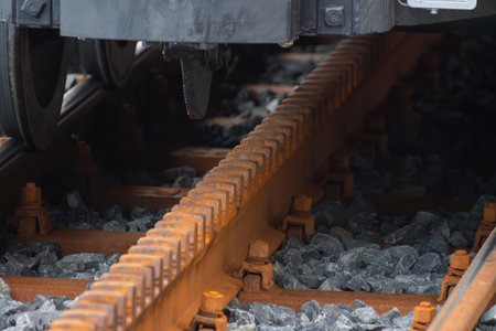 Close-up of train tracks, symbolizing journey and exploration. AI generative.