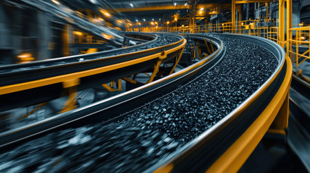 Efficient conveyor belt system showcasing modern mining operations scale and effectiveness. Concept Modern Mining Operations, Conveyor Belt System, Efficiency, Scale, Effectiveness