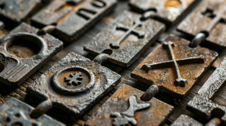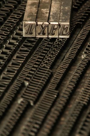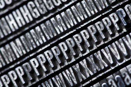 Old lead ink printing type from a book printing company. Historical metal letters from an old printing machine.