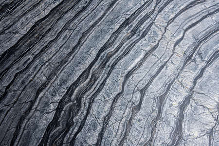 Rock cut raw surface of white and gray marble in the natural environment. Blue marble career texture. Real stone, industrial material for buildings and interior. Abstract background pattern