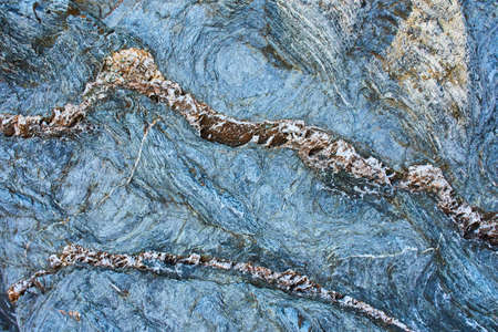 Close-up of layered rock surface with wavy textures and natural marbled patterns