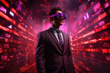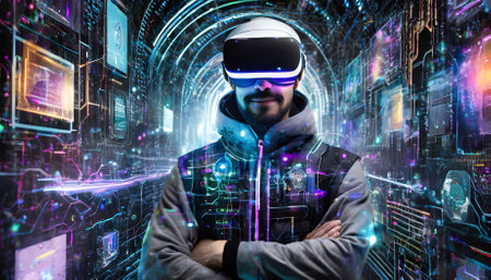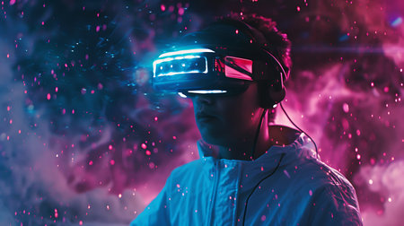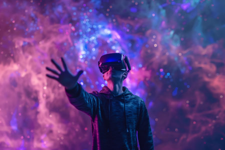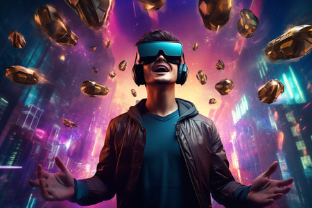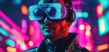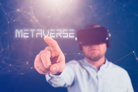 a man wears virtual reality headset in metaverse, future technology, digital native