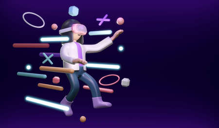 3D Rendering of girl with visual reality glasses using digital platform concept of VR Metaverse technology. 3D Render illustration cartoon style.