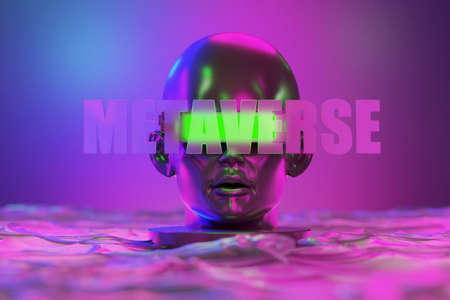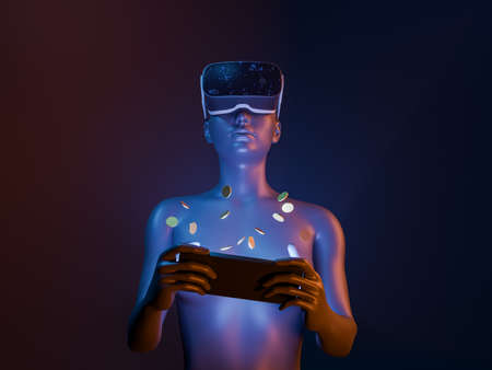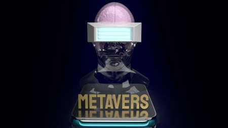 metaverse vr simulation gaming cyberpunk style, digital robot, 3d illustration rendering, virtual reality