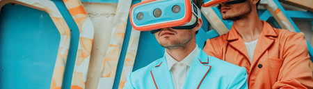 Explore a vibrant scene of virtual reality, where individuals engage with immersive music and dynamic visuals, creating a unique sensory experience.
