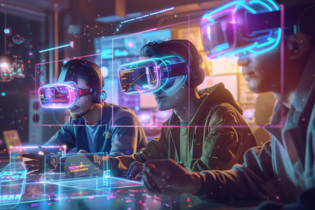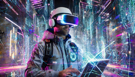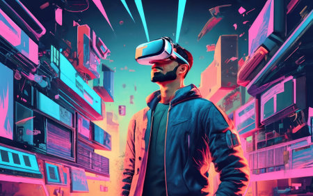 Cutting Edge Virtual Reality Experience in Vibrant Neon Hues An Immersive and Futuristic Digital Realm of Captivating Visuals and Boundless Possibilities