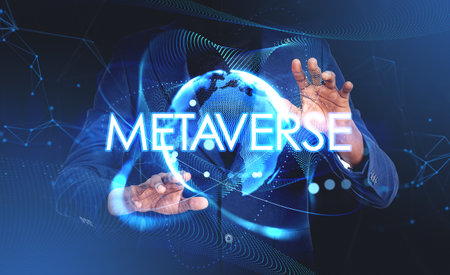 Metaverse virtual world, metaverse digital world intelligent futuristic interface technology, social network virtualization, 3D, AR, VR, futuristic innovation. Elements of this image provided by NASA.