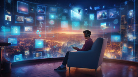 social networking services, streaming videos. The image signifies the intersection of digital content, community, and innovation