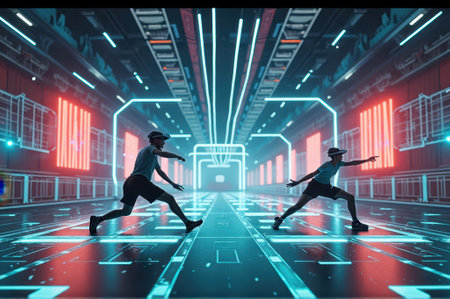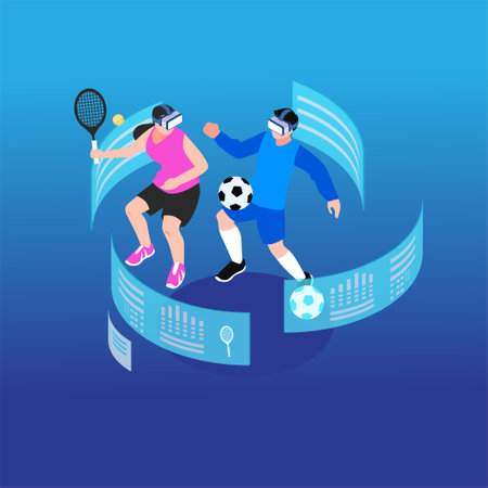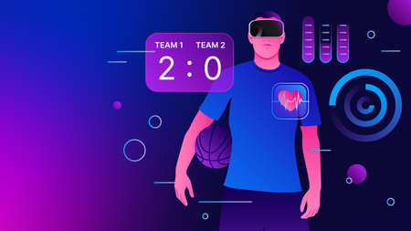 Sport and Health Illustration in Metaverse. Training Tracker Graphic Banner. Vector illustration