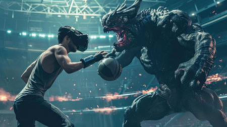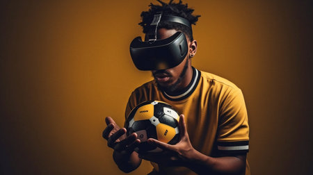 User engaged in virtual reality gaming with goggles and a soccer ball