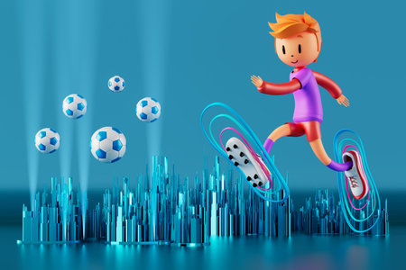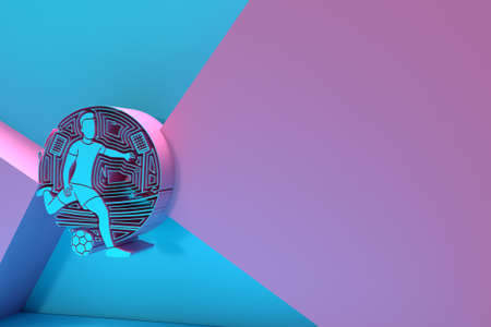 3D boy character football player in soccer action. 3d illustration. sports background concept. men kick motion. sports action person. graphic wallpaper. cartoon game soccer. creative poster layout