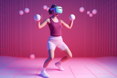Attractive young woman in sports clothing wearing virtual reality glasses