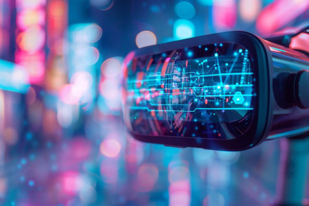 metaverse vr world simulation gaming cyberpunk style, digital robot ai, 3d illustration rendering, virtual reality device