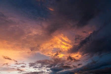 Sunset beautiful clouds on the dramatic stormy sky background before the rain. Dark stormy sky texture