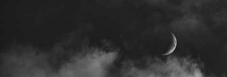 Clouds in evening dusk sky panoramic view. Climate, environment and weather concept sky background.