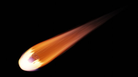 A glowing, blazing celestial rock streaks through the dark expanse, casting fiery light as it races on a collision course with our planet.