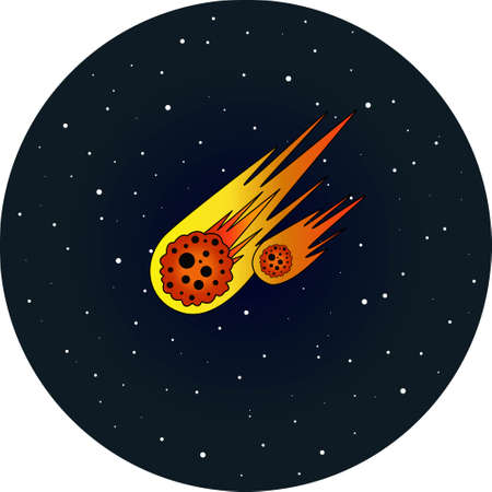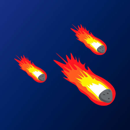 Flame meteorit rain in deep space. Vector illustration flat style.