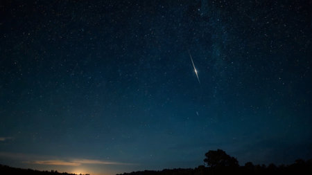 A stunning depiction of a bright meteor shower, showcasing a fiery trail against a dark, expansive space backdrop. Perfect for astronomy enthusiasts!