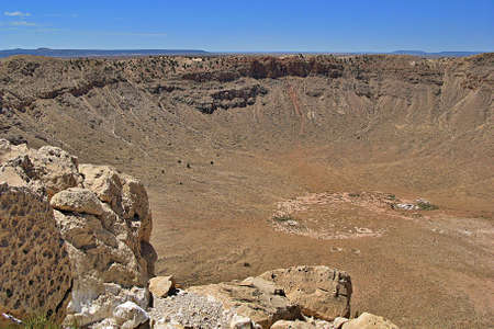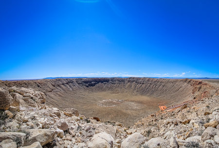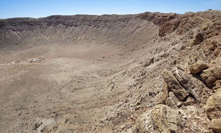 Meteor Crater near Winslow, Arizona on clear cloudless summer afternoon.