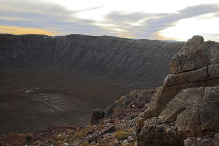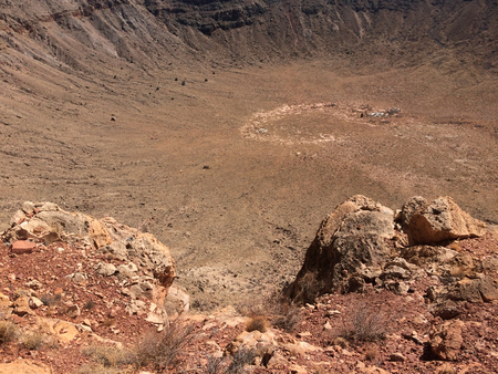 Looking down into Arizonas Meteor Crater along the southern rim.