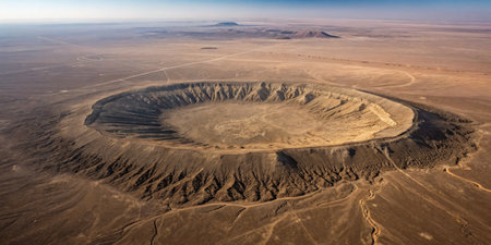 This stunning crater, an ancient impact site, casts a dramatic shadow in the desert.