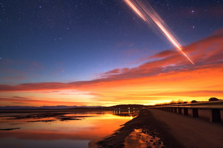 A stunning view of a glowing meteor as it streaks through space, leaving a vibrant trail of light. This image captures the beauty and wonder of the cosmos.
