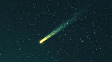 Stunning depiction of a bright comet moving gracefully through a starry sky. Its luminous tail trails behind, creating a mesmerizing celestial spectacle.