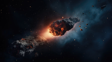 comet, asteroid, big cosmic explosion in space, Generative AI