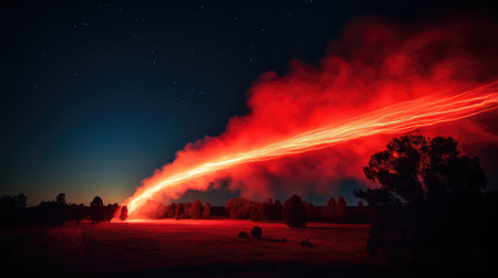 Fiery trails of crimson comets night sky ballet