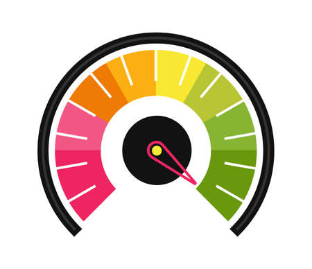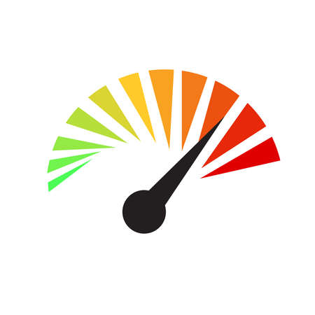 Speedometer icon or sign with arrow. Colorful Infographic gauge element. Vector illustration.