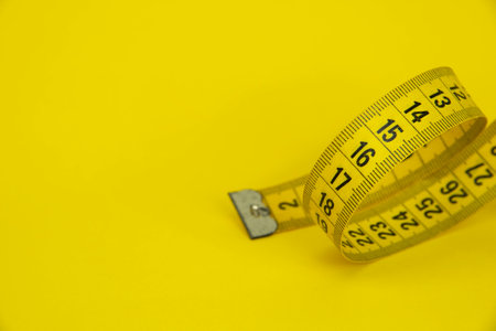 White measuring tape on yellow background