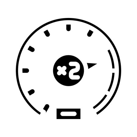 Speedometer gauge showing x2 multiplier symbol