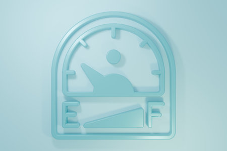 Blue Motor gas gauge icon isolated on blue background. Empty fuel meter. Full tank indication. Minimalism concept. 3D render illustration.