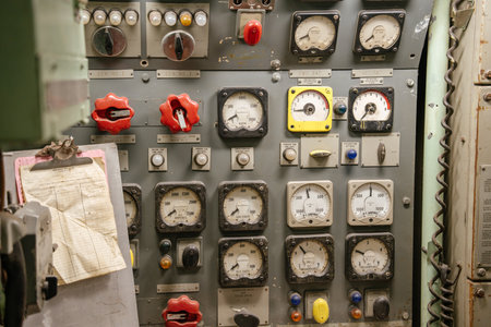 Vintage Control Panels and Gauges Displaying Industrial Equipment and Retro Technology