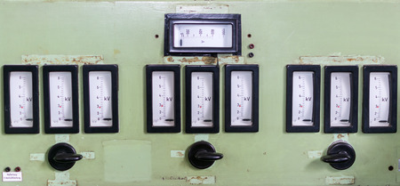 Information deck in a power plant. Analog devices show on the scale of electricity production the supply to the grid.