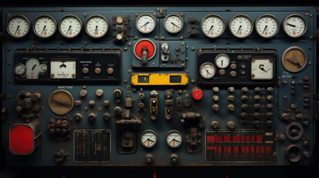 Vintage Control Panel with Dials, Gauges, and Switches - Industrial Retro Technology