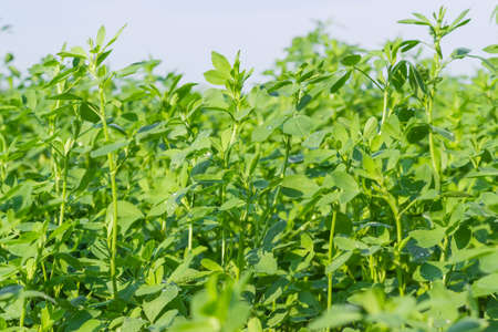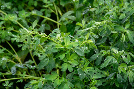 Fenugreek plant in field. Green Fenugreek. Fresh green fenugreek leaves